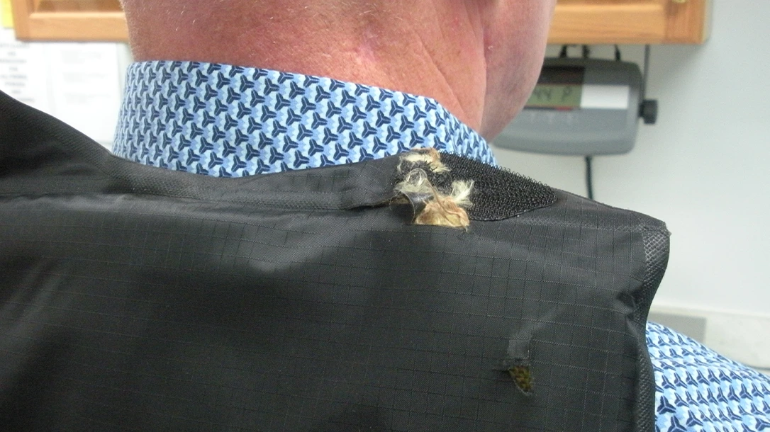 Lt. Murphy: The shooter had a Springfield XD 9MM. He used Federal Premium 147-grain jacketed, hollow-point rounds. The first shot was from approximately 40 yards away, one handed and over his shoulder, while running away from me. I don’t think that shot is repeatable again — Murphy’s Law, I guess. The remainder of the shots were fired from approximately six to 10 feet away.