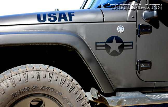 While discussing the concept of building a tactical ride with my cousin, we agreed that vehicles that are used for tactical, recreational and survival applications should carry the right complement of supplies and equipment that support the mission and purpose of the vehicle. This includes carrying a second spare tire mounted on a rim, a supply of bottled water, food rations, a fire extinguisher, jumper cables, spare clothing for different weather conditions, cans of tire-inflating chemicals, sand mats, survival blankets, a tool kit, flashlights, spare batteries, maps, a cell phone, portable radios, camping equipment when required, as well as firearms and ammunition when authorized by law. In order to expand the cargo capacity of the compact Jeep Wrangler, the rear seat can also be removed.