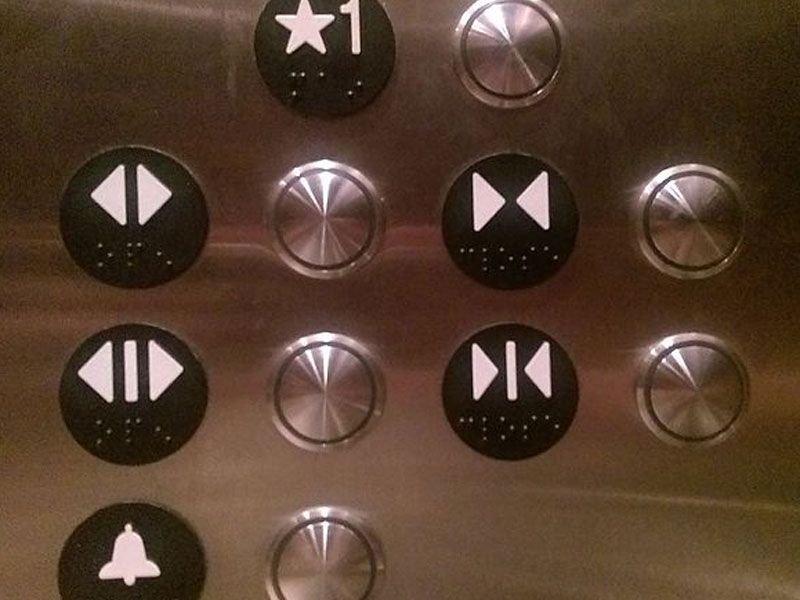 It may sound silly and obvious, but press the “door open” button. Don’t laugh, oftentimes you’re stuck only because the elevator’s doors didn’t open automatically.